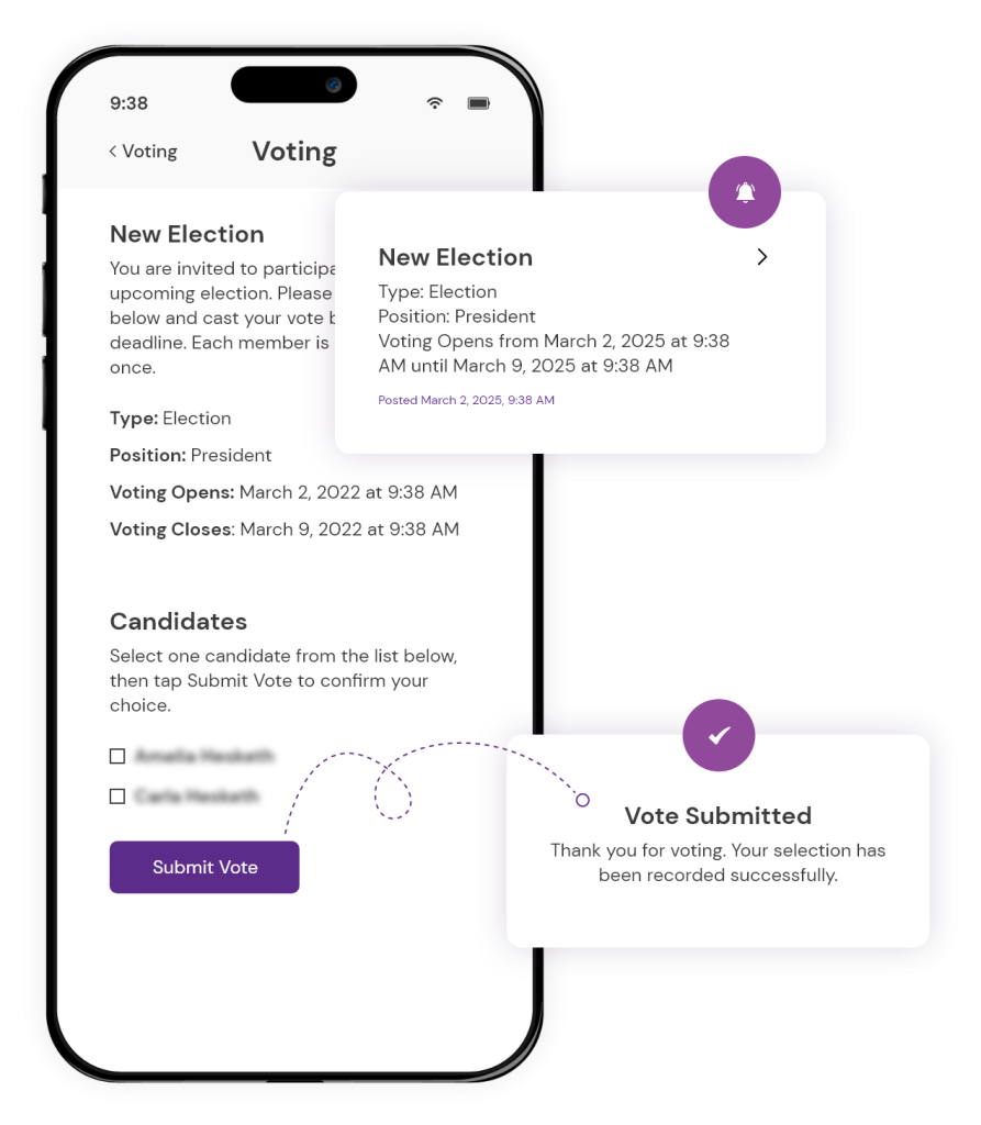 The Unionwire app is built for anyone to use – from your most technologically savvy to your smart phone newcomers. The app interface is free of clutter, so your people will easily be able to access the features they need. It also means voting is a breeze, with no confusing pathways to navigate. Everything is a click away.